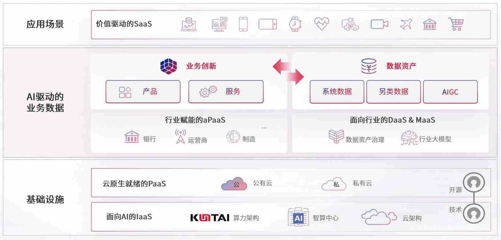 数字时代,,围绕企业数字化转型的关键要素,,,PA直营数码开创性的提出数云融合战略和技术体系框架,,,着力在云原生、、、数字原生、、、AI原生和信创产业上架构产品和服务能力,,,,为处在不同数字化转型阶段的快消零售、、汽车、、、、金融、、、医疗、、政企、、、教育、、、运营商等行业客户提供泛在的敏捷IT能力和融合的数据驱动能力,,,构建跨界融合创新的数字业务场景和新业务模式,,,,助力企业级客户建立面向未来的核心能力和竞争优势,,,,全面推动社会的数字化、、、智能化转型升级。。。